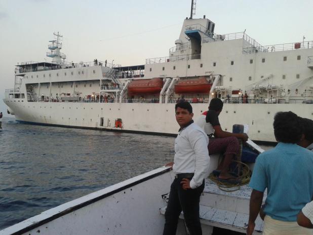 പിറ്റേന്ന് രാവിലെ 6.30നായിരുന്നു ബോര്ഡിം ടൈം.അല്പം നേരത്തേതന്നെ ഞങ്ങള് ഇറങ്ങിയിരുന്നു. ടിക്കറ്റ്ചെക്കിംങ്ങ് കഴിഞ്ഞ് വെസലിനകത്തെത്തിയ എനിക്ക് അനുഭവപ്പെട്ടത് ഒരു ചെറിയ വിമാനത്തിനകത്തെത്തിയ പ്രതീതിയായിരുന്നു.ഫുള് ഏസി,ടിവി,പരുപരുത്ത കുഷ്യനുള്ള ഇരിപ്പിടം,അകത്ത് ചെറിയ ഒരു കാന്റീനും. സീറ്റില് ഇരുന്ന എന്റെ അടുത്ത് ഒരു ”സീ മാന്”(വെസലിലെ ജോലിക്കാരന്) അളിയാ…എന്നും പറഞ്ഞ് കെട്ടിപിടിച്ചു. ഇവനേതടാ…എന്ന് അന്തം വിട്ട് നില്ക്കുന്ന എന്നോട് എന്റെ ഭാര്യപറഞ്ഞു.”ഇത് ഞെങ്ങ ബാട്യേള്ളതാ…ഇക്കാ…” ഞാന് ചോദിച്ചു.”വാടിയതോ…എന്ത് വാടിയത്”? എന്റെ ചോദ്യം അല്പം ശബ്ദത്തിലായത്കൊണ്ട് കേട്ടവരെല്ലാം ഉറക്കെ ചിരിച്ചു.ചിരിയടക്കി അവള് തിരുത്തിപറഞ്ഞു.”വാടിയതല്ലാ…ബാട്യേ…തറവാട്ടിലുള്ളത്” അങ്ങനെ അവരുടെ ഭാഷ അറിയത്തതിന്റെ ആദ്യ ചമ്മല് അവിടെ തുടങ്ങുകയായിരുന്നു.പിന്നീടാചമ്മലൊരു ശീലമായി. വെസല് പുറപ്പെടുന്നതിന് മുംമ്പ് വിമാനത്തില് ടിവിയില് വെസല് അപകടത്തില് പെട്ടാല് എന്ത് ചെയ്യണം എന്നുള്ളതിന്റെ ട്രയല് കാണിച്ചുള്ള വീഡിയോ ഓണായി. പണ്ട് ദുബായില് പോകുന്ന സമയത്ത് ഒരു വെളുത്തസുന്ദരി വിമാനം പുറപ്പെടുന്നതിന് മുംമ്പ് കാണിച്ചപോലുള്ള ഒരു കോപ്രായംപോലെ എനിക്ക് തോന്നി.
