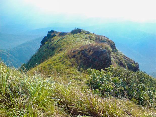 നടപ്പുവഴിയും അവസാനിക്കുന്നു. പച്ചനിറമാർന്ന, തേയിലത്തോട്ടം പോലെ തോന്നിക്കുന്ന ഒരു മൊട്ടക്കുന്ന് ദൂരെ പ്രത്യക്ഷപ്പെട്ടു. അടുത്തെത്തിയപ്പോഴാണ് അതുമുഴുവൻ കാട്ടുപയർ ആണെന്ന് മനസ്സിലായത്. അതിനടുത്ത് ചെറിയ ഒരു പാറയുടെ അടിയിലെ ഉറവയിൽ നിന്നുള്ള ജലം കല്ലുകെട്ടി ചെറിയൊരു കുഴിയിൽ സംഭരിച്ചു നിർത്തിയിട്ടുണ്ട്. ആ വെള്ളം കുപ്പിയിൽ ശേഖരിച്ച്, അരയോളം ഉയരത്തിൽ വളർന്നുനിൽക്കുന്ന കാട്ടു പയറുകൾക്കിടയിലൂടെ ഒരു വിധം മുകളിലെത്തി.
